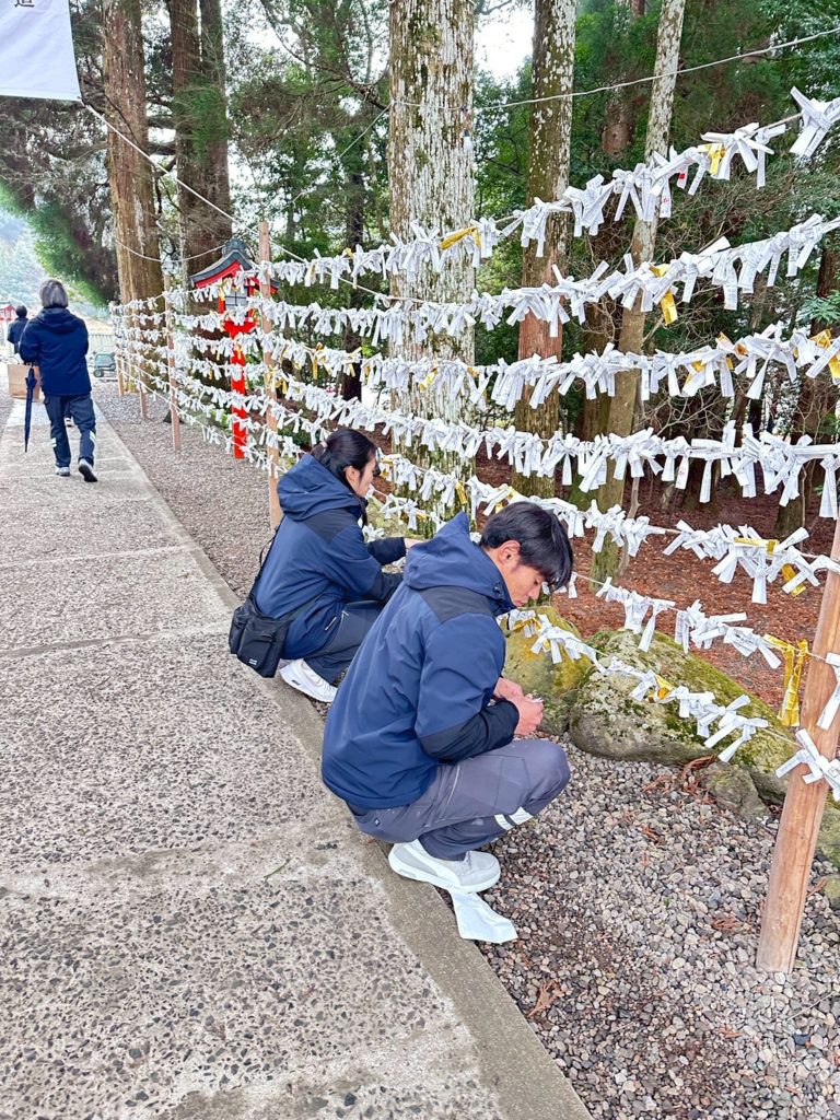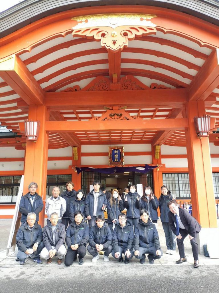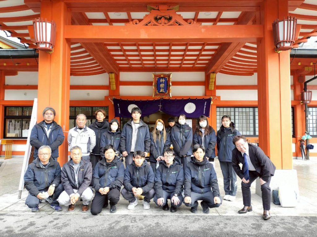 朝礼後、社内の敷地や周辺の清掃を行い、その後、全員で霧島神宮に参拝に行って参りました。